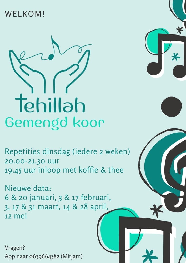 Beste gemeenteleden, enthousiast geworden na de Kerstzangdienst? Van harte welkom om mee te zingen met zanggroep ‘Tehillah’. Dinsdag 6 januari hopen we weer te starten met het repeteren van nieuwe muziek. De inloop met koffie/thee is om 19.45 uur, de repetitie begint om 20.00 uur. Je bent ook van harte welkom als je een keertje sfeer wil komen proeven. Tot dinsdag!